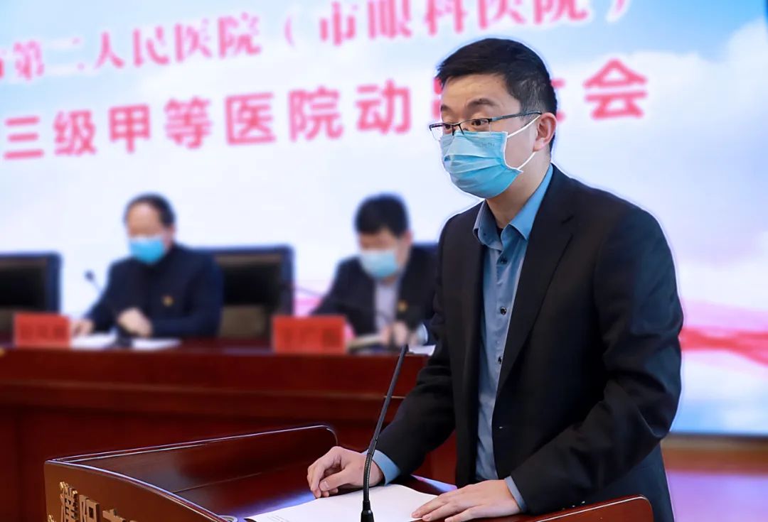 3月31日,濮陽市第二人民醫(yī)院(市眼科醫(yī)院)嚴(yán)格按照疫情防控要求,在十樓會(huì)議室召開創(chuàng)建三級甲等醫(yī)院動(dòng)員大會(huì),就三級甲等醫(yī)院創(chuàng)建相關(guān)工作進(jìn)行部署,動(dòng)員全院干部職工統(tǒng)一思想、迅速行動(dòng),積極掀起“三級甲等醫(yī)院”的創(chuàng)建熱潮。醫(yī)院領(lǐng)導(dǎo)班子,各科室科主任、護(hù)士長及部分職工代表參加會(huì)議,會(huì)議由趙風(fēng)林副院長主持。